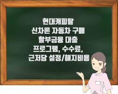 이번포스팅에서는 현대캐피탈 신차론 자동차 구매 할부금융 대출 프로그램, 수수료, 신용점수(등급), 근저당 설정/해지비용 알아보시죠에 관하여 자세히 알아보도록 하겠습니다.